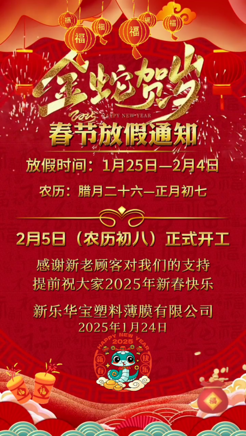 新樂華寶塑料薄膜有限公司是河北華寶塑機股份有限公司的子公司,成立于1999年。公司位于河北省新樂市,距石家莊國際機場6公里,距北京228公里,距天津港275公里,緊臨107國道和京珠高速公路,交通便利。 公司注重技術創新,引進先進水平的生產工藝及加工設備,專業從事PE流延膜的開發、研制和生產,是生產PE流延膜的專業廠家。主要產品有:三層共擠PE流延膜、透氣膜、居中印刷復合膜、低克重...更多